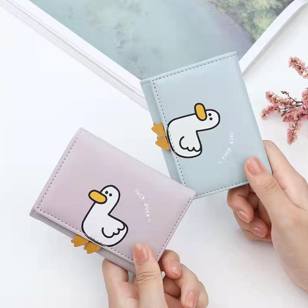 Women Short Cute Small Wallets Cartoon Duck Purses Student Triple Fold Card Holder Girl ID Bag Card Holder Ladies Wallets 2023