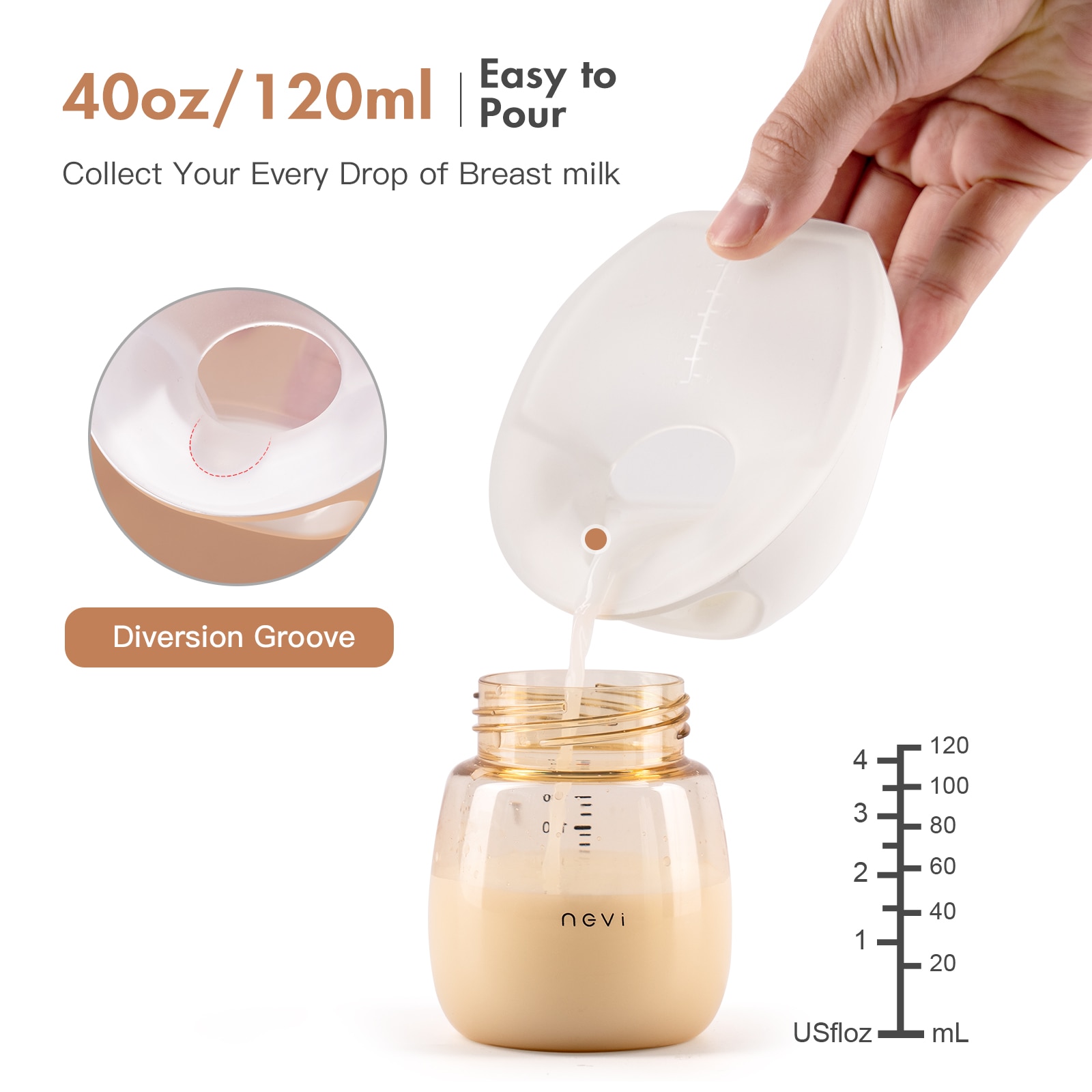 • 【Portable & Reusable】NCVI Breastmilk Collector is light and portable to carry even in a small handbag. Moms can use it whether at home or outsides as a nursing pad. It contains up to 4oz/120ml of breast milk. And the flat bottom makes sure it stands upright to prevent spill.