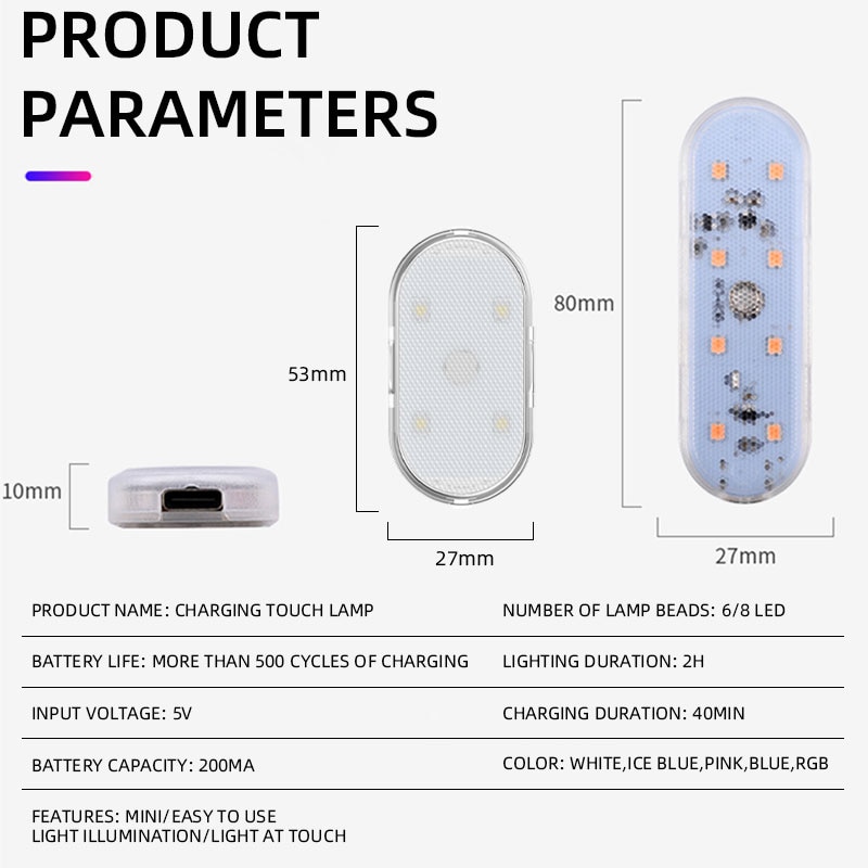 1pcs Touch Light Interior Car Light Wireless Interior Lights Magnetic Car Ceiling Lamp Reading Light Car Decoration USB Charging