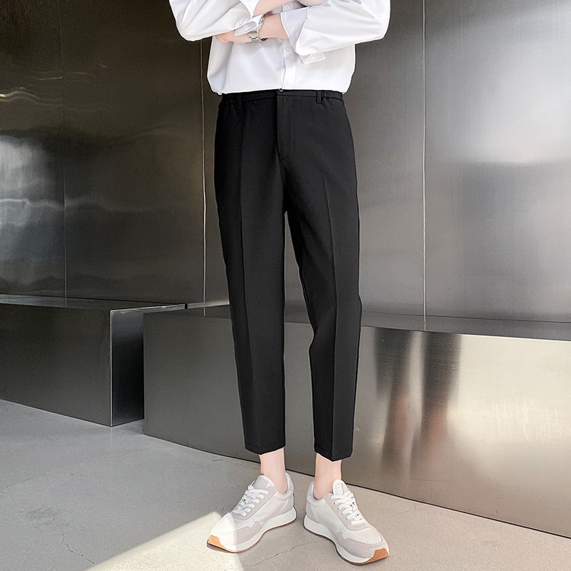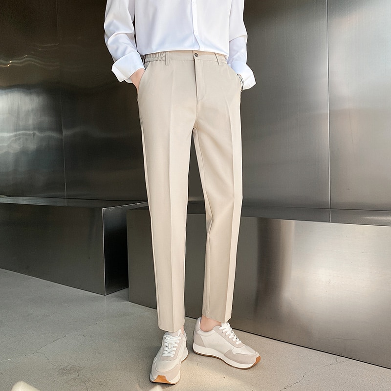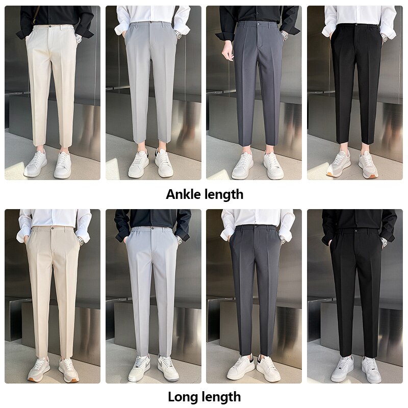 Spring Summer Suit Pants Men Stretch Business Elastic Waist Slim Ankle Length Pant Korean Thin Trousers Male Large Size 40 42