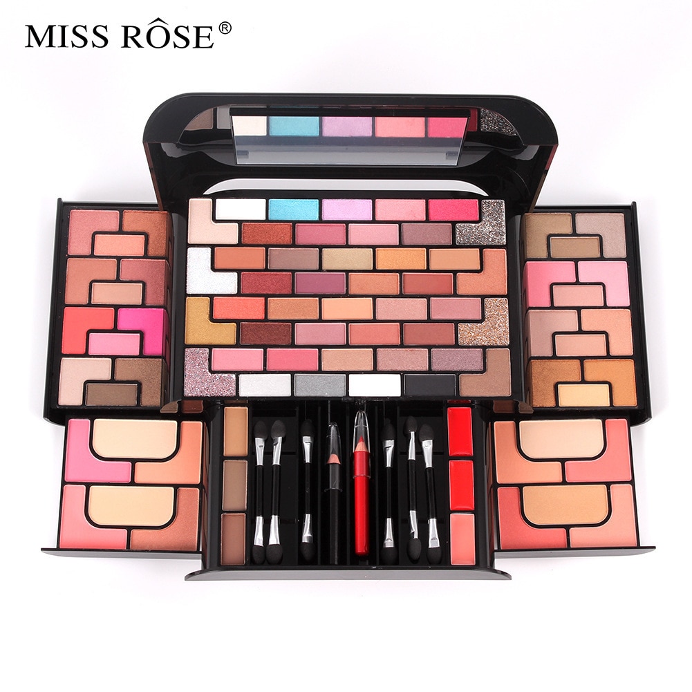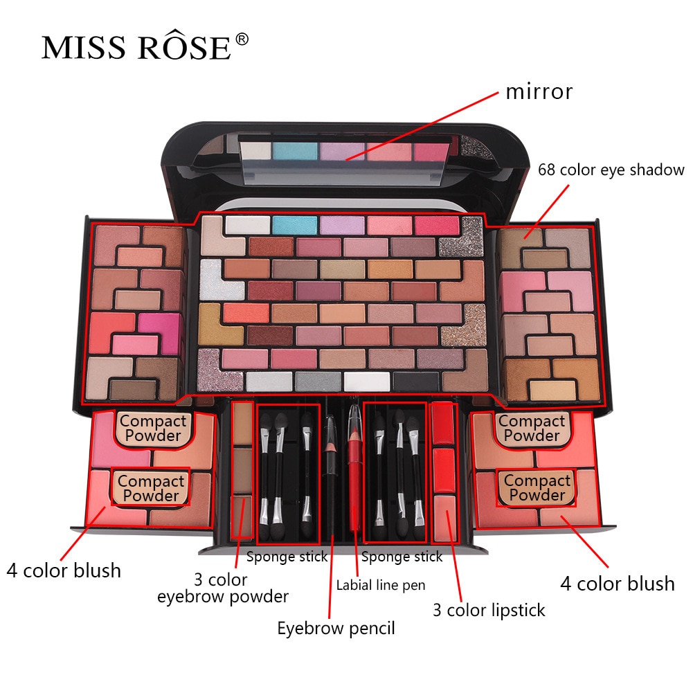 HEALLOR MISS ROSE 68 Color Eye Shadow 8 Color Blush 4 Color Powder Cake 3 Color Eyebrow Powder Lipstick Luxury Women Makeup Set