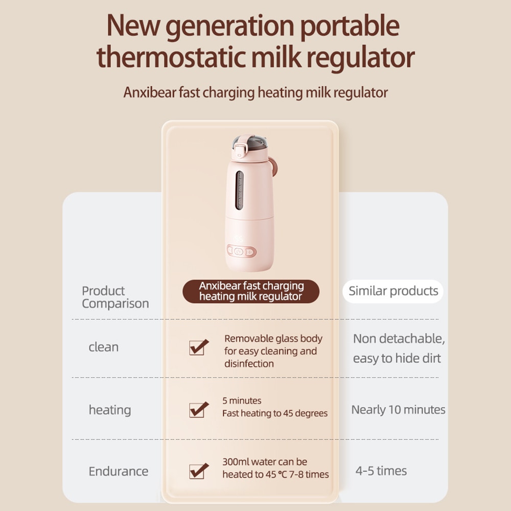 【300ml Capacity】The portable water warmer has 300ml capacity, which can soak milk 3-4 times. 3 minutes wireless fast heating, the baby water warmer is a good helper for mixing formula milk outdoors.