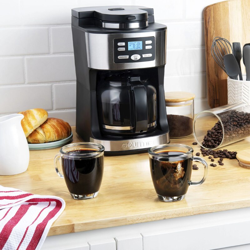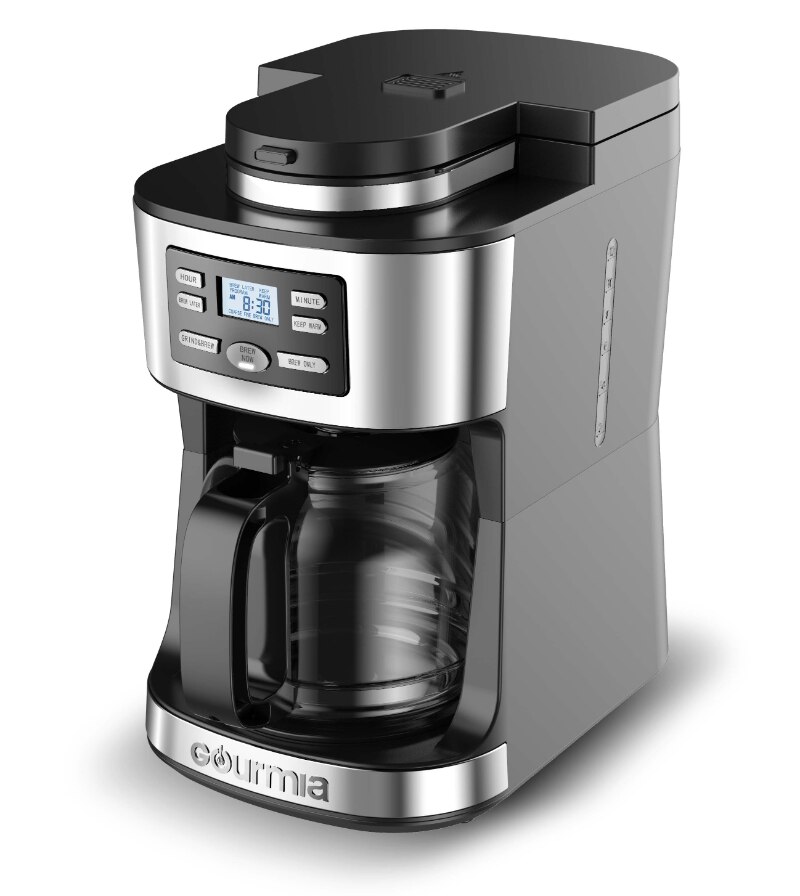 A good day starts with the perfect cup of coffee. You need a coffee maker that's as flexible as you are, and this Gourmia 12-Cup Programmable Grind & Brew Coffee Maker with Integrated Coffee Grinder, Black, is up to the task. When you just need a cup of coffee in the morning, the last thing you want to do is pull out the grinder and blitz your beans to the right size. This coffee maker is here to make your mornings, days, and nights easier. The integrated grinder, with adjustable grind size, produces uniform size grinds while maintaining the flavor and aroma of the beans to make for the perfect cup of coffee. You can also brew your favorite pre-ground coffee, with the Grind Off Feature. It features a sleek, durable, and modern design, with stainless steel accents, and 12-cup glass carafe. Save time and space and enjoy consistently fresh and delicious coffee, cup after cup.