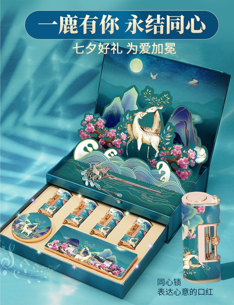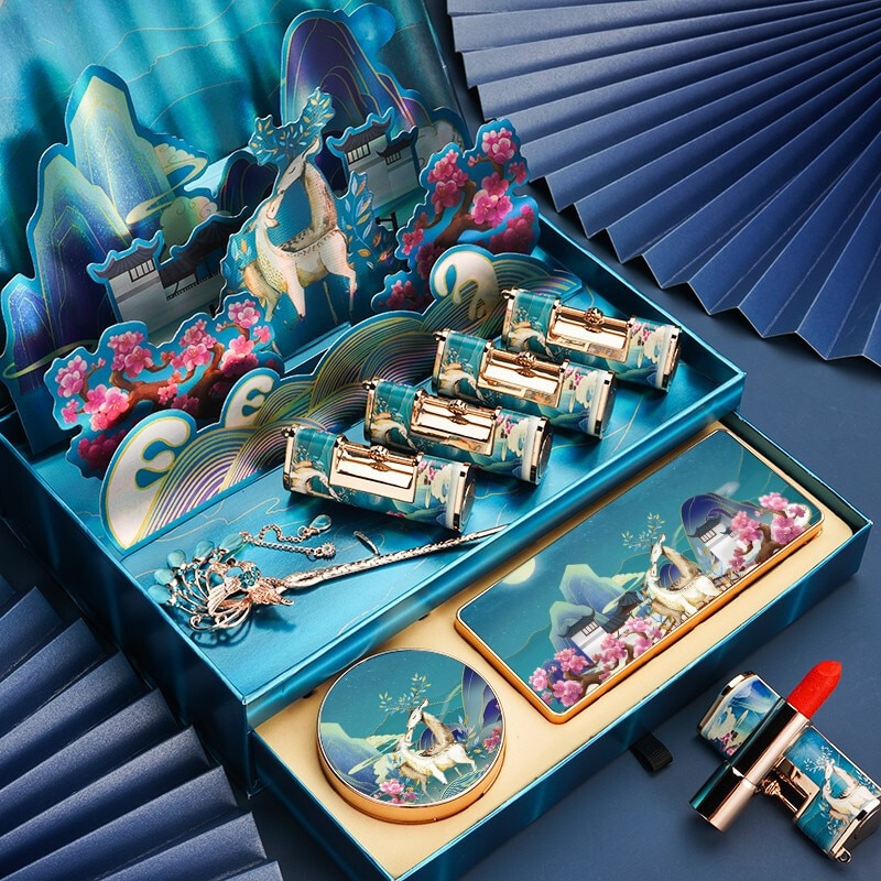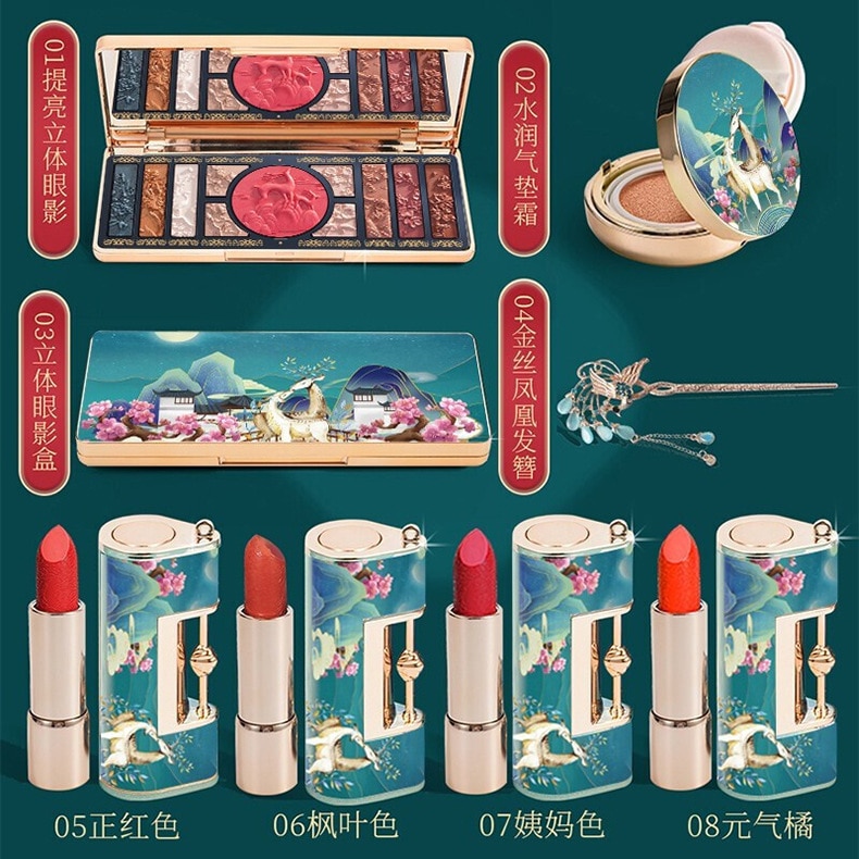 New Premium Christmas Gift Cosmetic Set Chinese Sculpted Lipstick Embossed Eyeshadow Moisturizing Air Cushion Ladies Makeup Kit