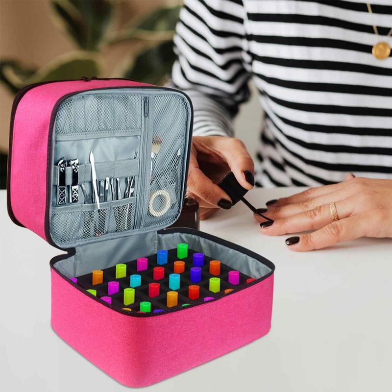 Sdattor Nail Polish Carrying Case Nail Organizers And Storage 30 Bottles Double-Layer Handheld Holder For Brushes Nail Files