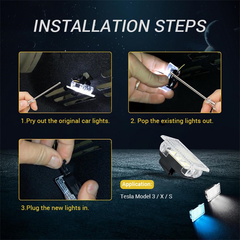 -Customized for Tesla Model 3, Tesla Model X and Tesla Model S (Trunk Light & Frunk Light & Puddle Light & Foot Well Lights & Glove box light). Direct replacement of the factory dim light.