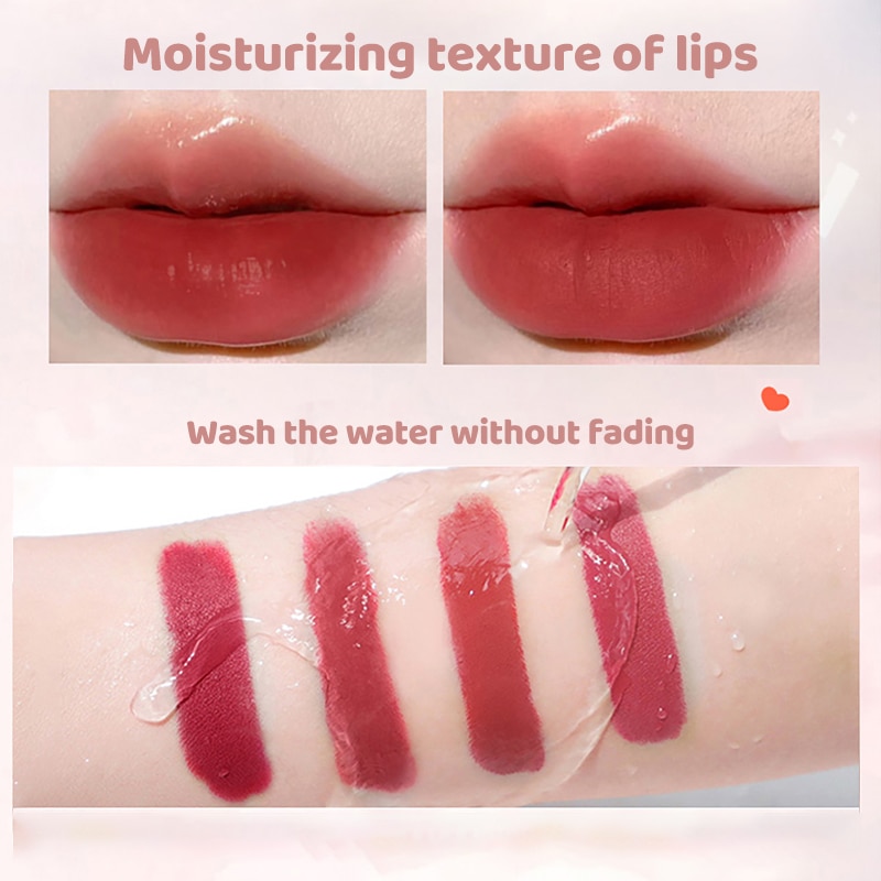 4PCS/Set Velvet Matte Lip Gloss Waterproof Long Lasting Waterproof Lipstick Nourish Lip Makeup Lip Mud Tint Cream Cosmetics Girl