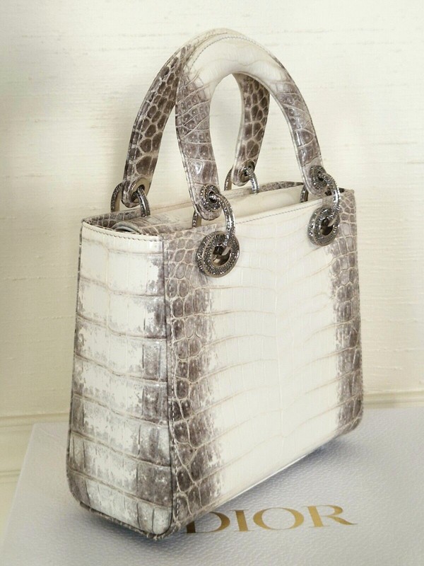 Like new. Only used once for gala event. Full set as shown in the photos.Comes with box, dustbag, authenticity card, care booklet, CITES documents, original receipt, shoulder strap. Christian Dior Himalayan Lady Dior in Niloticus crocodile creamy white ombre leather, with crystal encrusted hardware and DIOR charms fully wrapped with Himalayan crocodile leather.
