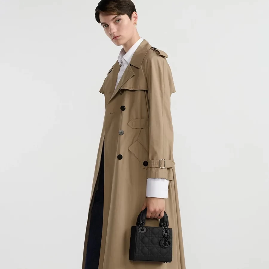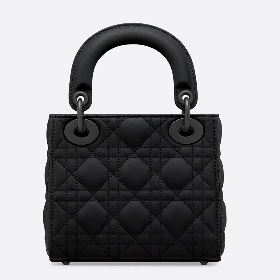 Thiết kế túi kiểu dáng nhỏ nhắn, sang trọng nổi bật với những chiếc charm kim loại chữ "DIOR" mạ cùng tông màu đen làm nổi bật tổng thể. Với dây đeo vai dạng chuối phôi da có thể tháo rời, chiếc túi Lady Dior thu nhỏ này có thể cầm tay hoặc đeo chéo như một người bạn đồng hành lý tưởng cho mọi trang phục.